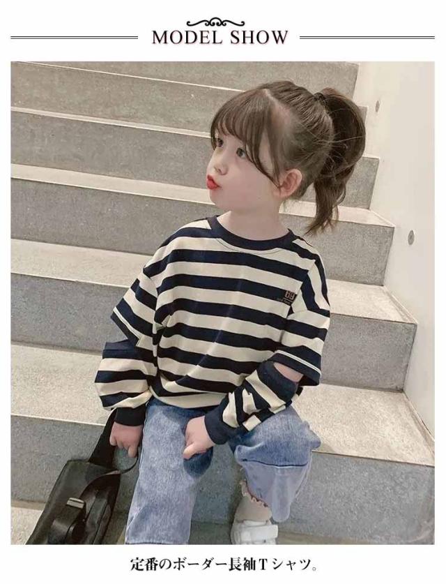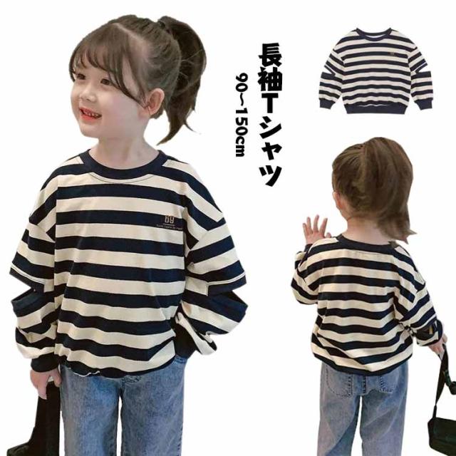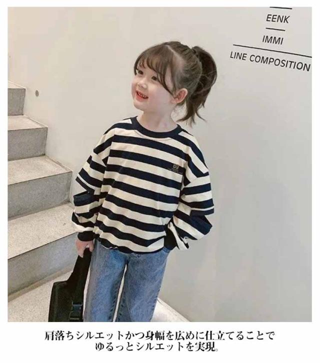 ゆるっとボーダー長袖Tシャツ 子供服 キッズ 男の子 女の子 長袖Tシャツ ロンT トップス 長袖 90 100 110 120 130 140 150 送料無料
