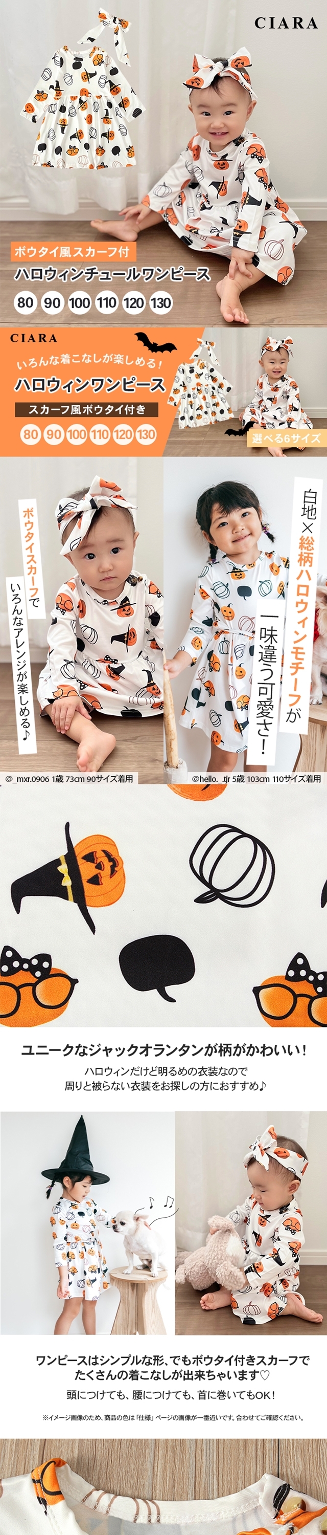 ハロウィン コスチューム コスプレ 仮装 衣装 おばけ かぼちゃ カボチャ パンプキン ジャックオランタン スカーフ リボン 白 イベント お遊戯会 ワンピース スカート 子供 キッズ 女の子 プリント HALLOWEEN こども 保育園 幼稚園 お出かけ 送料無料 新作 福袋 ホワイトデー お返し 新生活 セール プレゼント ギフト プレゼント交換 プチプラ プチギフト 内祝い かわいい おしゃれ キャラクター パーティー 双子コーデ 80 90 100 110 120 130 お揃い こどもの日 撮影 赤ちゃん 新生児 未使用 CIARAポーチ雑貨屋 シアラ OEM 大量注文 ネスリーフ 2025