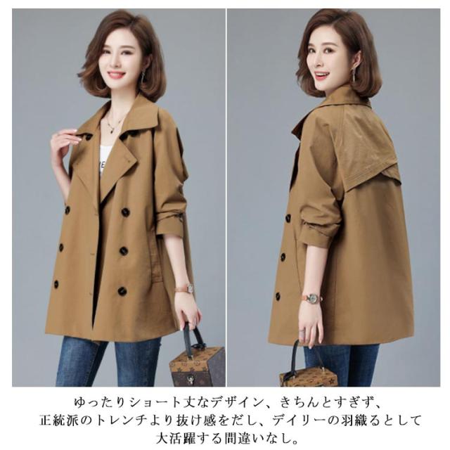トレンチコート テロンチ 大きいサイズ スプリングコート レディース ショート 春コート 春 アウター 40代 50代 ショート丈 体型カバー 上品コート きれいめ ゆったり 薄手 軽い アウター 大人