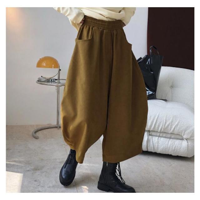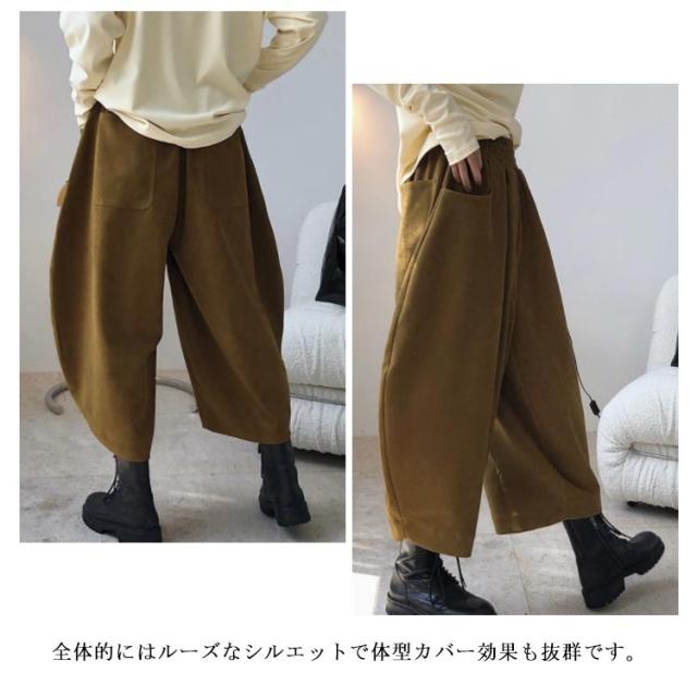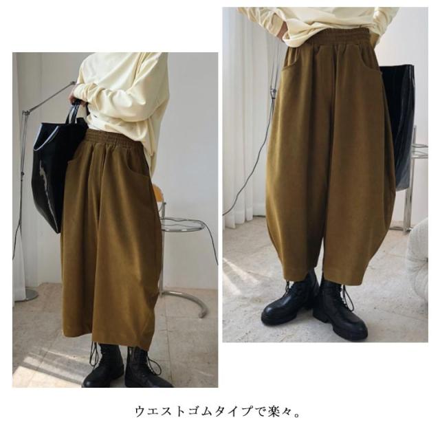 | さらりと軽やか風合いの綿麻素材で仕立て、ストレスフリーな穿き心地です。 ウエストゴムタイプで楽々。 全体的にはルーズなシルエットで体型カバー効果も抜群です。 足首見せるクロップド丈で、サンダルもスニーカーとも好相性◎ | |