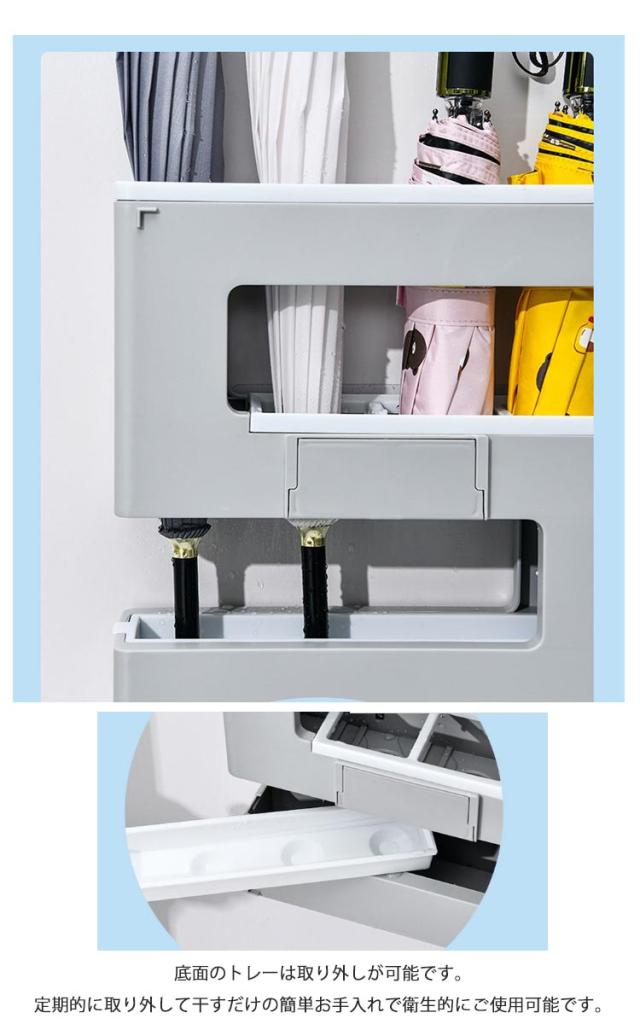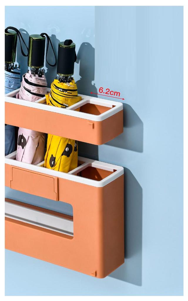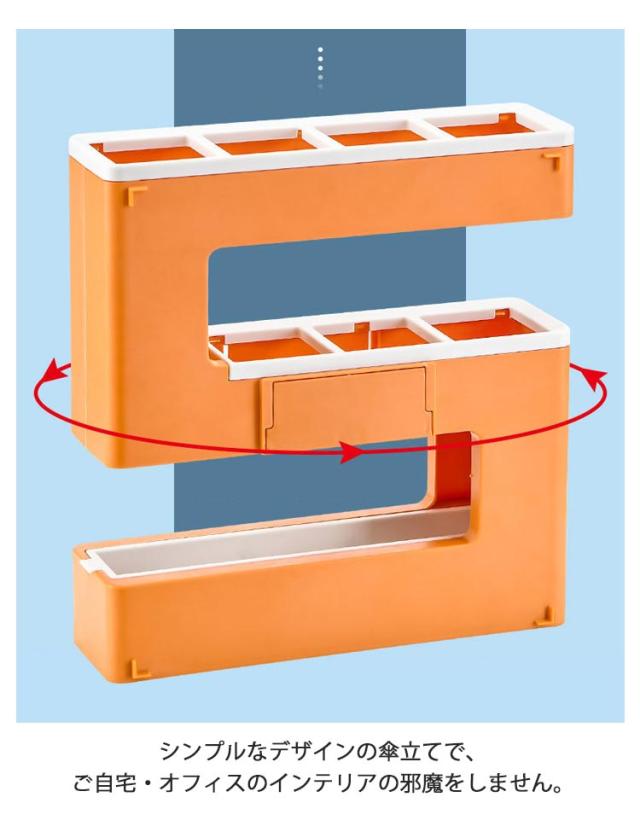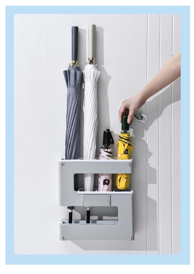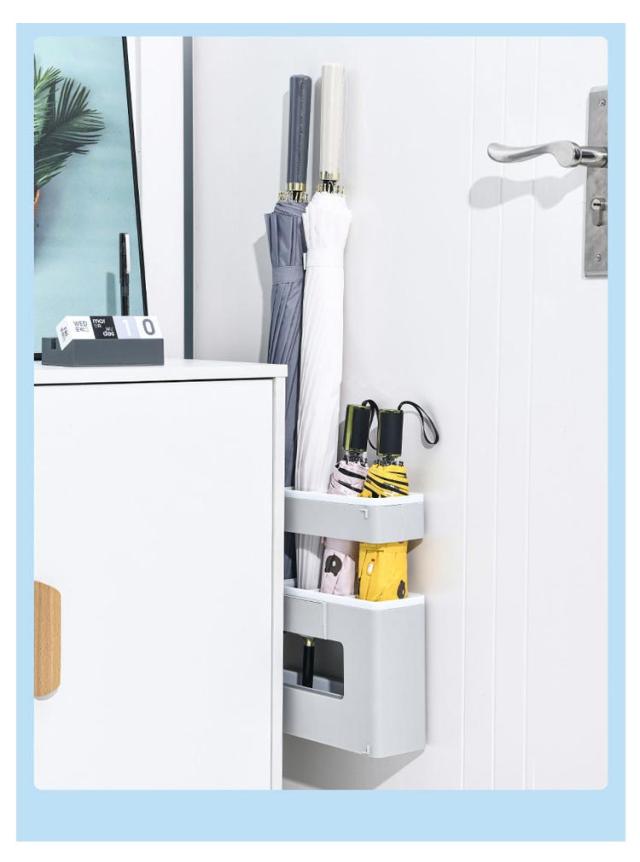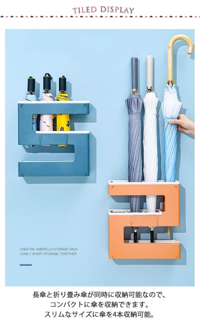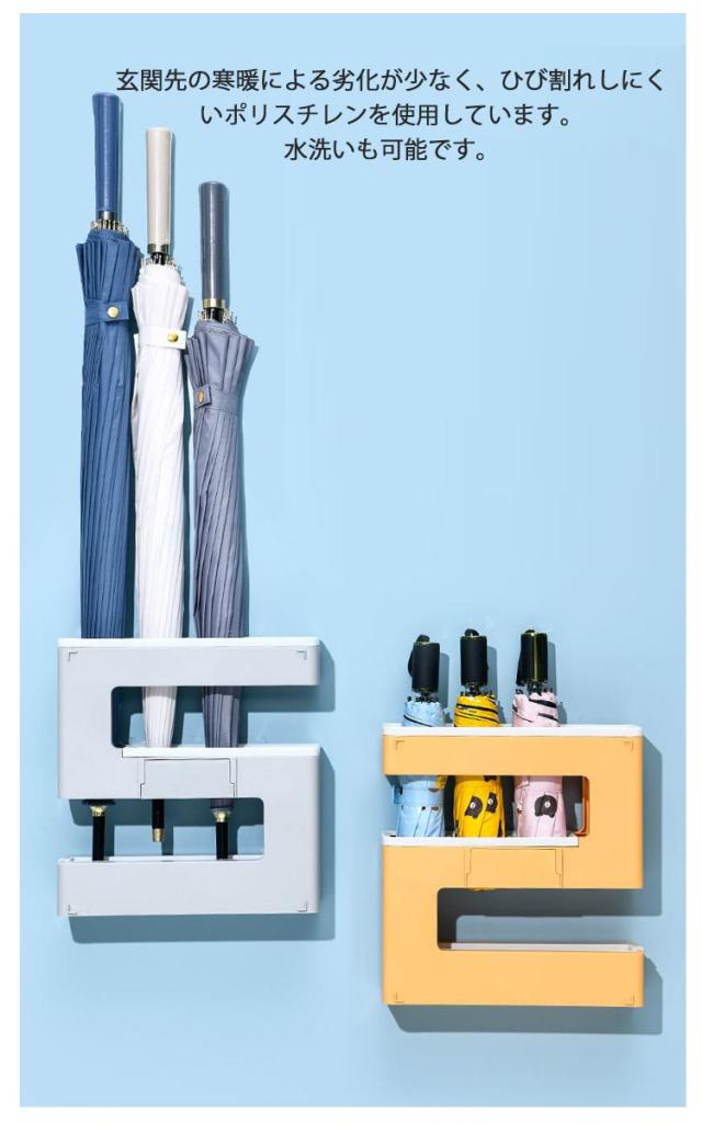 | 壁面に付けられる傘立て。 長傘と折り畳み傘が同時に収納可能なので、コンパクトに傘を収納できます。 スリムなサイズに傘を4本収納可能。 玄関先の寒暖による劣化が少なく、ひび割れしにくいポリスチレンを使用しています。水洗いも可能です。 取り付け簡単!付属の粘着フックを壁に貼り付けて、フックに本体を掛けるだけ。 底面のトレーは取り外しが可能です。定期的に取り外して干すだけの簡単お手入れで衛生的にご使用可能です。 シンプルなデザインの傘立てで、ご自宅・オフィスのインテリアの邪魔をしません。 | |