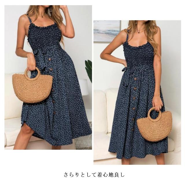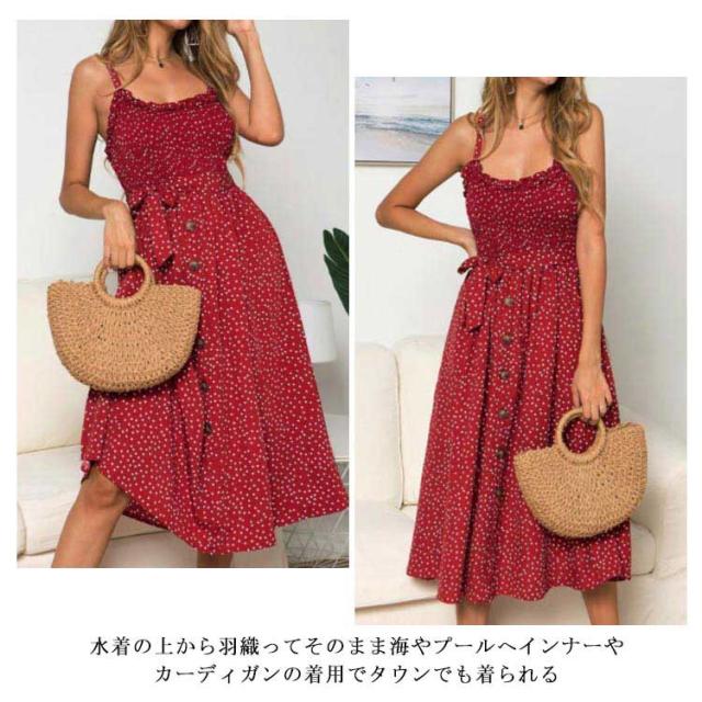 リゾートワンピ マキシ丈ワンピース キャミソールワンピース フレア 大きいサイズ レディース 大人 ドット柄 おしゃれ エレガント キャミソール ロング丈ドレス 水着の上に着る 薄手 ハワイ 沖縄 旅行