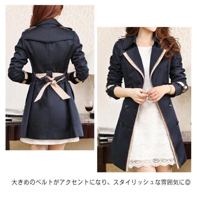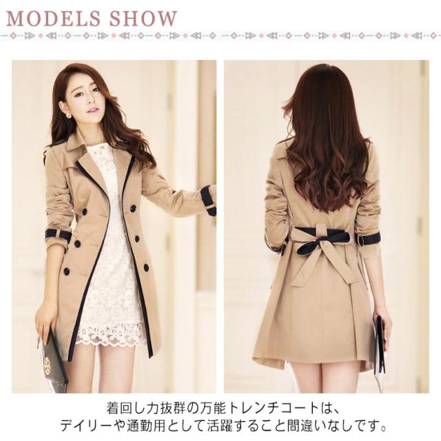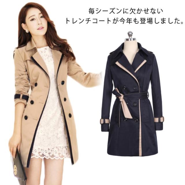 | 毎シーズンに欠かせないトレンチコートが今年も登場しました。 しっかりとした素材感が、大人っぽく落ち着いた印象を与えます。 大きめのベルトがアクセントになり、スタイリッシュな雰囲気に◎ バイカラーのアクセントと、程良い丈感がスリムな体のラインをキレイに見せます。 着回し力抜群の万能トレンチコートは、デイリーや通勤用として活躍すること間違いなしです。 | |
