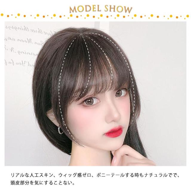 | まるで地毛のようなおしゃれなつむじ付き前髪ウィッグ。耐久性よく、アレンジ自在の高品質人毛採用。 気になる部分を自然にカバーし、円形脱毛や白髪隠しには是非オススメの頭頂部360度カバーしてくれるポイントウィッグ。 長めのサイドの毛で、顔の形を綺麗に見せてくれる上に、地毛との境目が目立たず、一体化にしてくれます。 軽やな印象を与えてくれる薄めのシースルーバング前髪、大人可愛いエアリー感を演出。 リアルな人工スキン、ウィッグ感ゼロ、ポニーテールする時もナチュラルでで、頭皮部分を気にすることない。 | |
