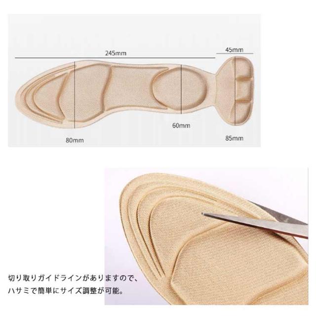 かかとパッド 2枚セット ハイヒール インソール 一体型 パンプス サイズ調整 ハイヒール 足痛い レディース 吸汗性 通気性 防臭効果 低反発クッションソール ブラック アイボリー 靴擦れ防止 パンプス 緩み防止 カカトフィット 送料無料
