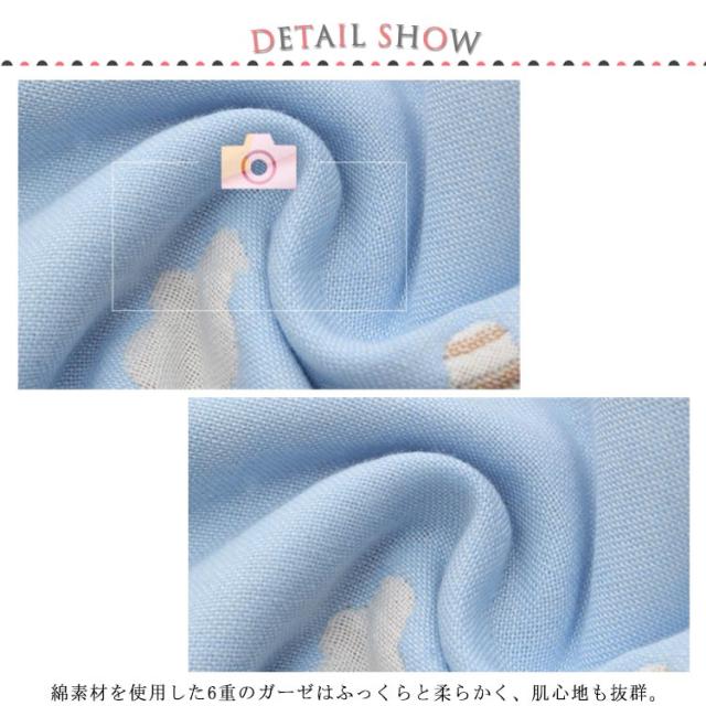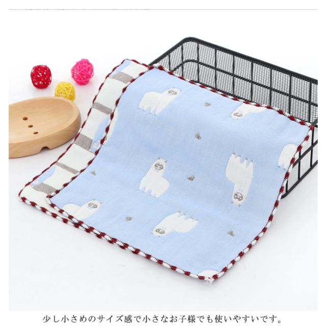 | 綿素材の6重カーゼのフェイスタオル。 綿素材を使用した6重のガーゼはふっくらと柔らかく、肌心地も抜群。 繊維の隙間が多いので吸水性に優れ、汗や湿気を素早く発散し快適にご使用いただけます。 お洗濯もしやすく干しやすいので毎日爽やか☆ どなたにも喜んでお使いいただけるのでお祝いやプレゼントにおススメです。 少し小さめのサイズ感で小さなお子様でも使いやすいです。 ループが付いて使い勝手にもこだわっているから、保育園や幼稚園でも大活躍。 | |