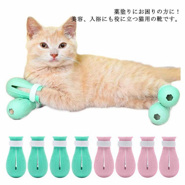 猫用 靴 猫用 爪カバー 4個セット 猫靴 猫手袋 入浴 爪切り 薬塗り 補助靴 シリコン ネコ 靴 ブーツ 通院 点耳薬 点滴 耳掃除 補助具 爪きり 引っかき防止 足ブーツ 介護ケア 補助用品 滑り止め 脱げない 猫の靴 シューズ お手入れ サイズ調節可能 収納ケース付き 送料無料
