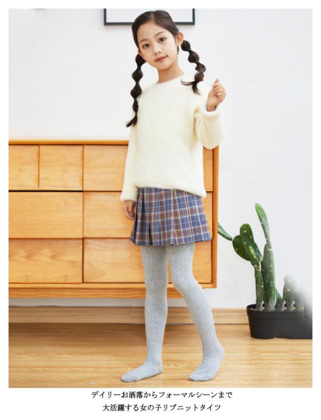 子供タイツ キッズ タイツ リブ編み 女の子 幼児 子供 靴下 赤ちゃん ベビー ニットタイツ スパッツ 無地 おしりマチ ずり落ちにくい 送料無料