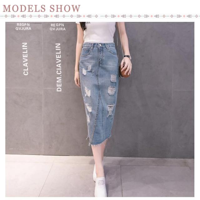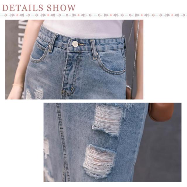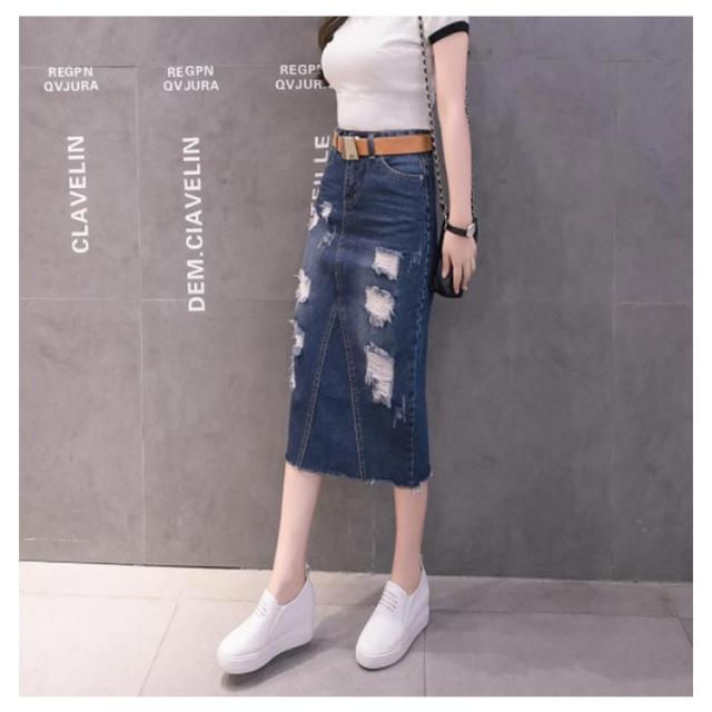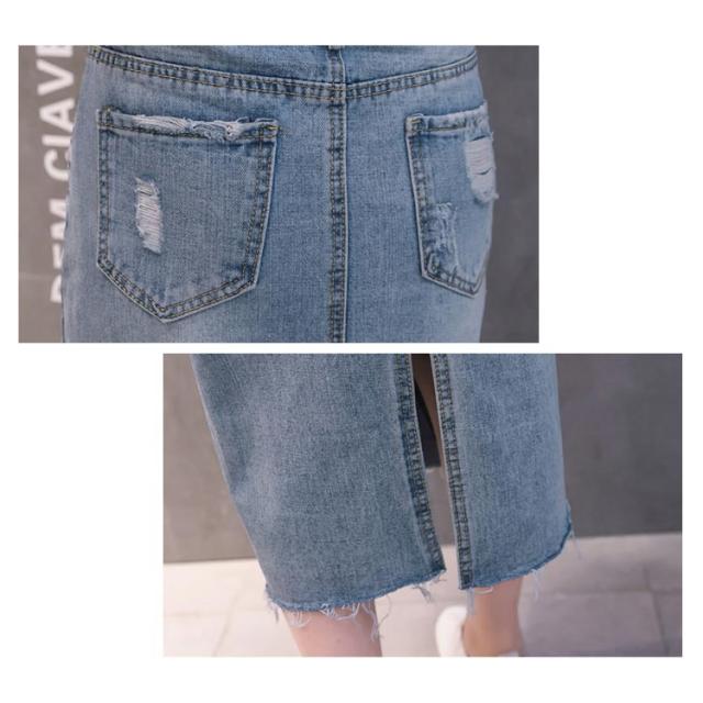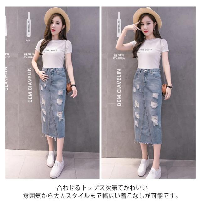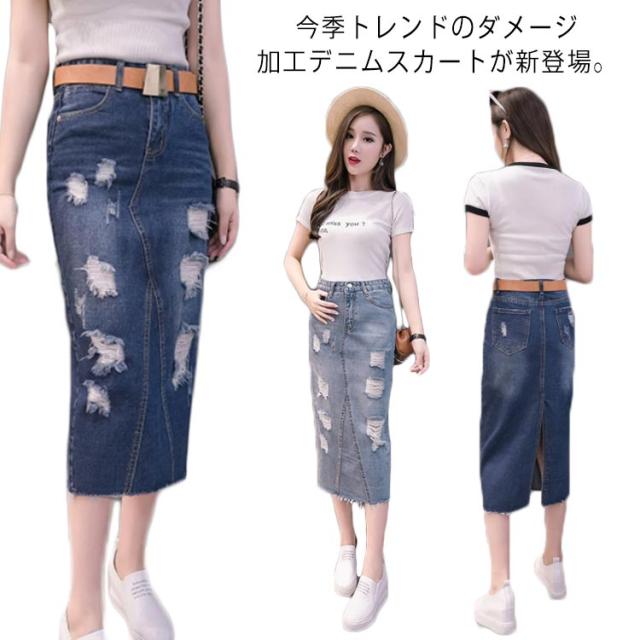 デニムスカート レディース スリム ロング丈 スカート スリット入り ダメージ加工 ボトムス ミモレスカート おしゃれ ハイウェスト 可愛い 春物 お洒落
