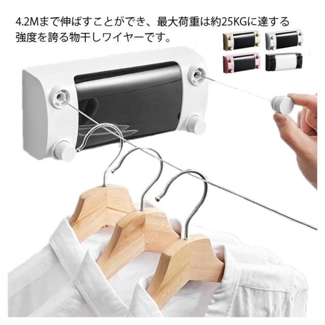 室内物干しワイヤー 2本ワイヤー 25kg耐重荷 伸縮式 物干しロープ 洗濯物干し 部屋物干し 布団干し 乾燥ラック 洗濯物ハンガー 室内物干し竿 ステンレス 省スペース 梅雨対策 巻き取り式 室内 室外