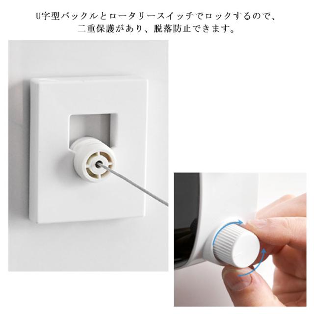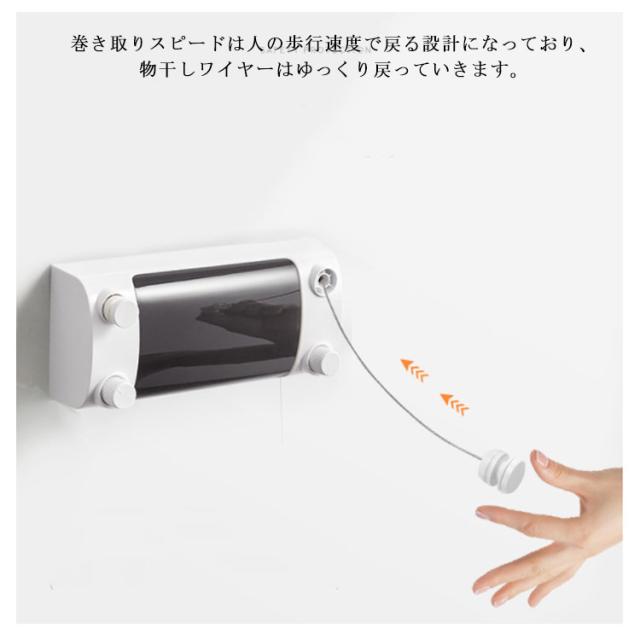 | 4.2Mまで伸ばすことができ、最大荷重は約25KGに達する強度を誇る物干しワイヤーです。 巻き取りスピードは人の歩行速度で戻る設計になっており、物干しワイヤーはゆっくり戻っていきます。 壁に穴を開けても、開けなくても取り付けることができます。穴を開けずに接着剤での取り付けができますので、壁を傷付けずお引越しも楽々です。 U字型バックルとロータリースイッチでロックするので、二重保護があり、脱落防止できます。 室内物干しワイヤーは壁付けタイプの為、省スペースで収納場所には困リません。使わない時は簡単に収納できます。 | |