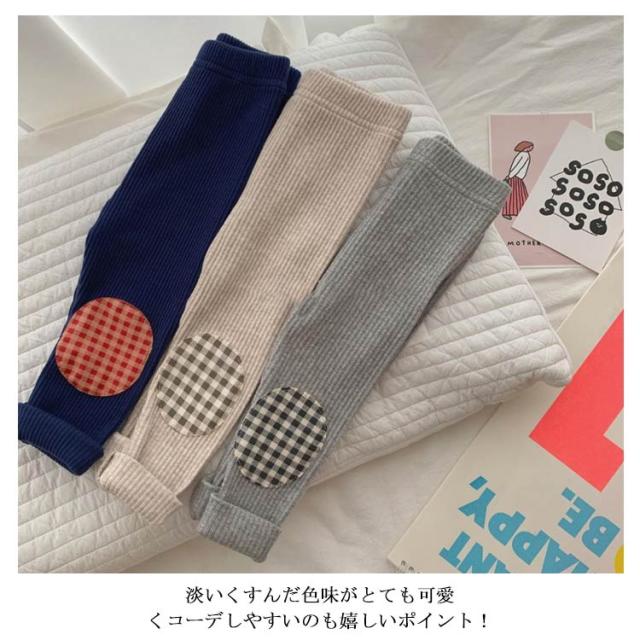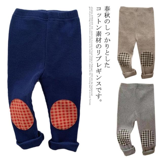 リブレギンス キッズ 韓国子供服 ナチュラル 韓国 子供服 春秋 韓国 ベビー服 女の子 男の子 ストレッチ ボトムス スパッツ 無地 ワンポイント 韓国ファッション グレー ネイビー キャメル 73cm 80cm 90cm 100cm 110cm
