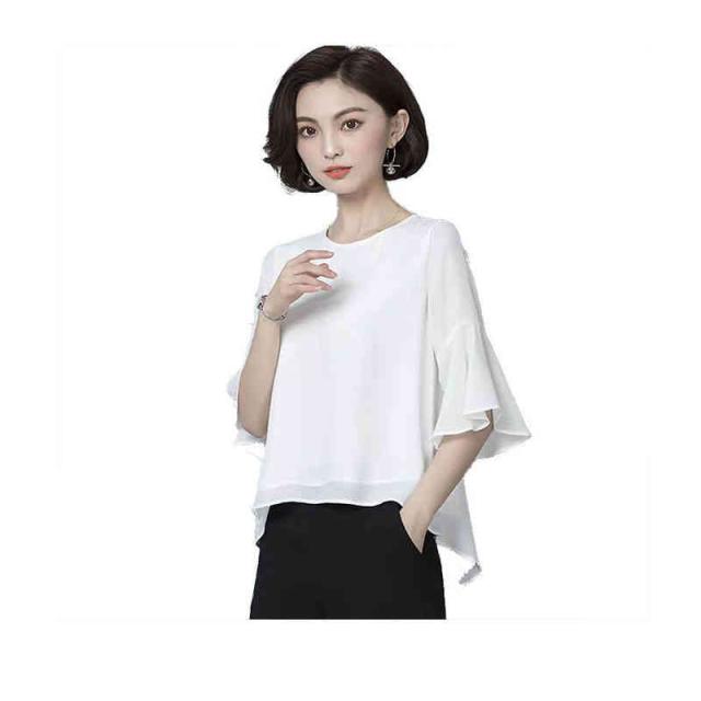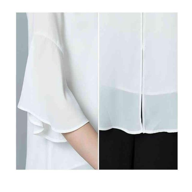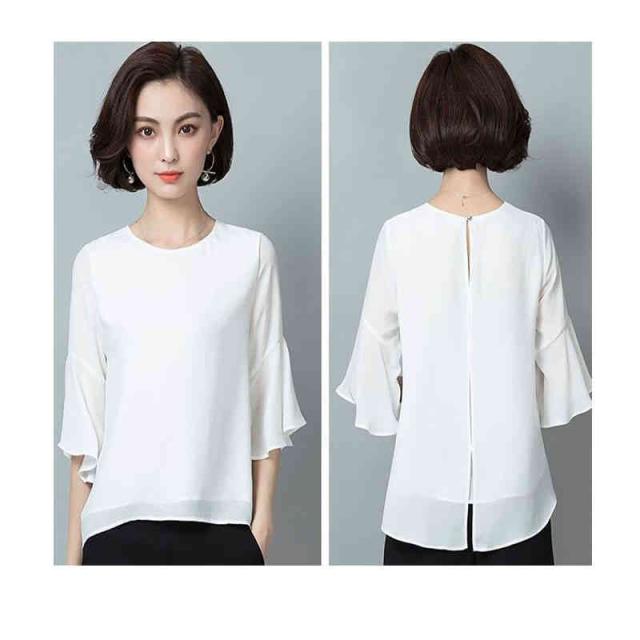 ブラウス シャツ レディース トップス 五分袖 高見え フリル袖 体型カバー ゆったり 春 通勤 ウォッシャブル バックデザイン お呼ばれ ママ 卒園式 入学式 卒業式 着痩せ 上品