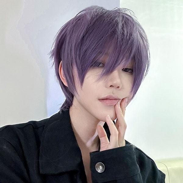 ウィッグ メンズ 男装 短髪 かつら フルウィッグ ショートウィッグ コスプレウィッグ 可愛い ショート ショートヘア 演劇 自然 前髪あり コスプレ おしゃれ かっこいい 可愛い 耐熱ウィッグ 小顔効果抜群 コスチューム 文化祭 学園祭 イベント 紫 dq096n1n1zr