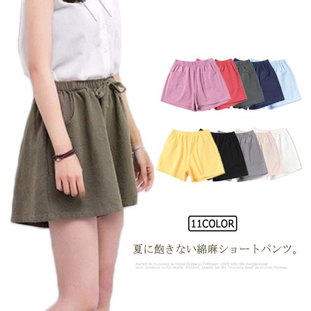 ショートパンツ 薄手 レディース ガウチョパンツ ショート丈 綿麻パンツ リネン パンツ ワイドパンツ 無地 夏 短パン 短め 綿 麻 ウエストゴム ポケット付き ルームウェア 部屋着 カジュアル 送料無料 スポーツ おしゃれ 楽チン ボトムス 春夏