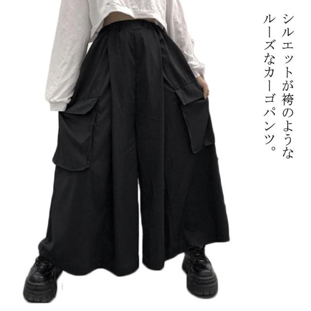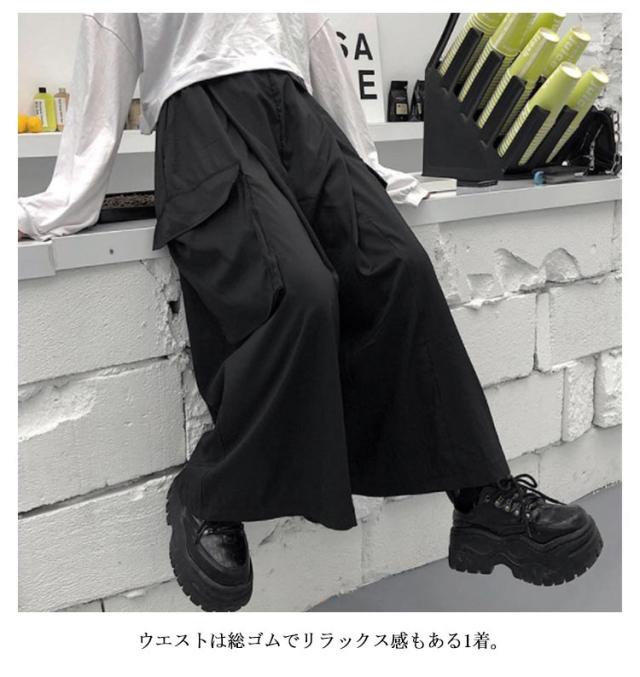 ワイドパンツ メンズ スカートパンツ 袴パンツ サルエルパンツ カーゴパンツ 薄手 ゆったり ビッグ スカンツ ポケット付き レディース モード ロング丈 ルーズ 大きいサイズ 体型カバー ユニセックス 【送料無料】