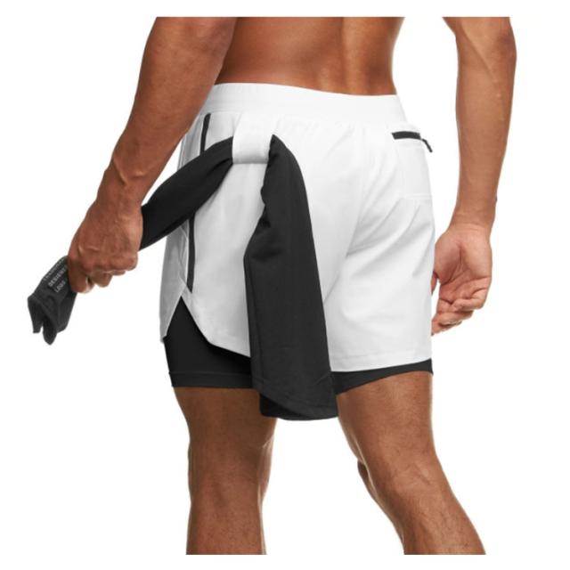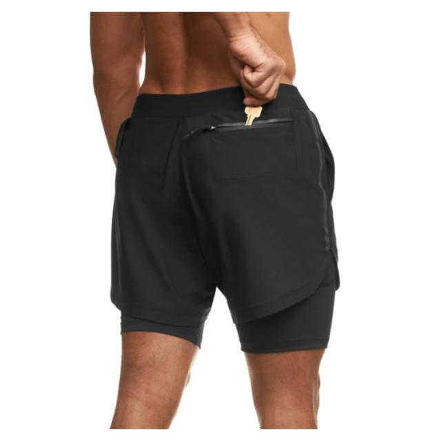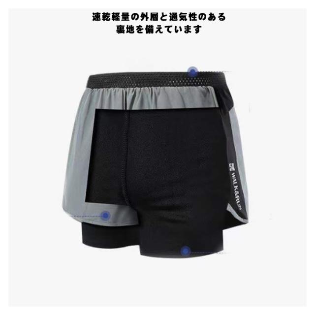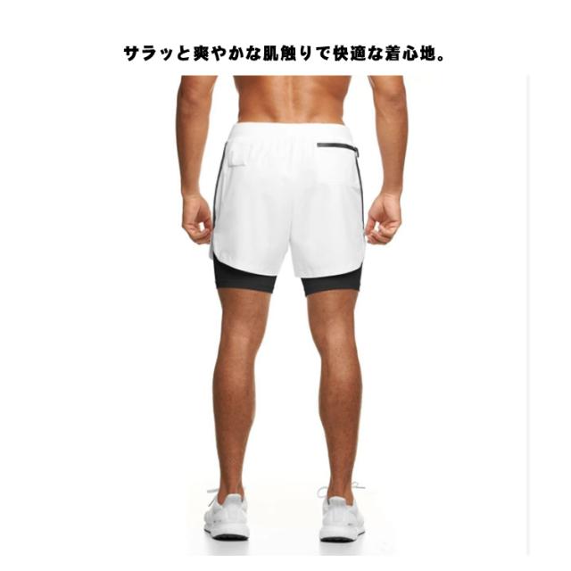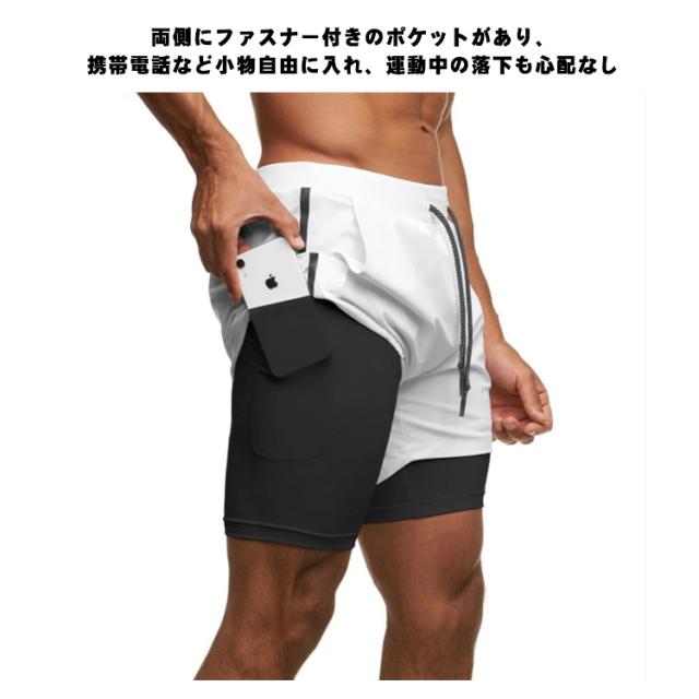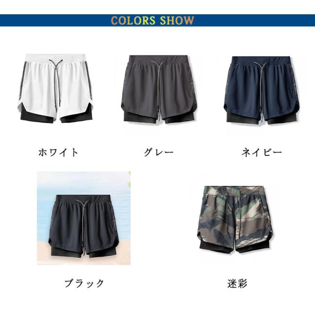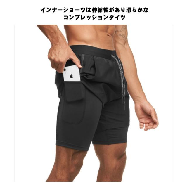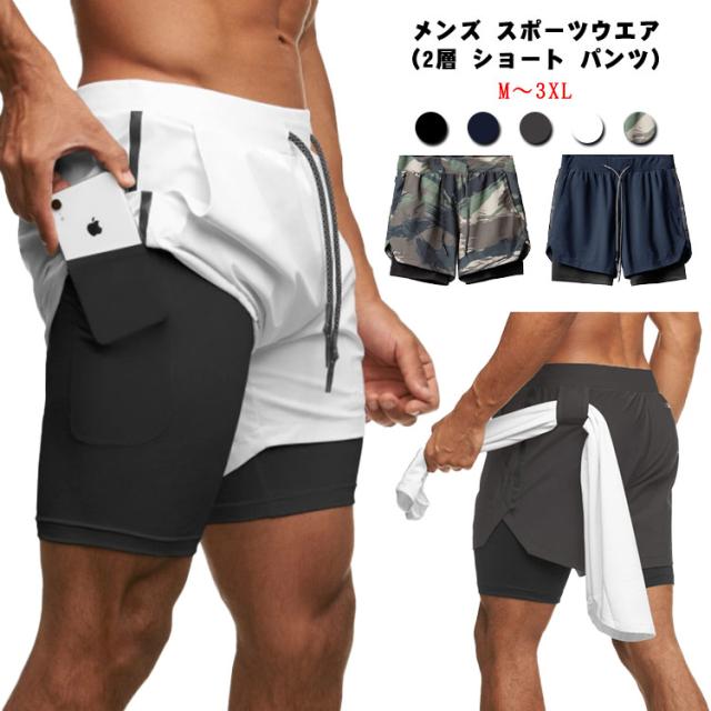 メンズ スポーツウエア(2層 ショート パンツ)ハーフ パンツ ルームウェア ランニング ウェア トレーニング カジュアル ショーツ 短パン 男性 二重 内側ポケット 筋トレ ランニング 2層式 速乾性 送料無料
