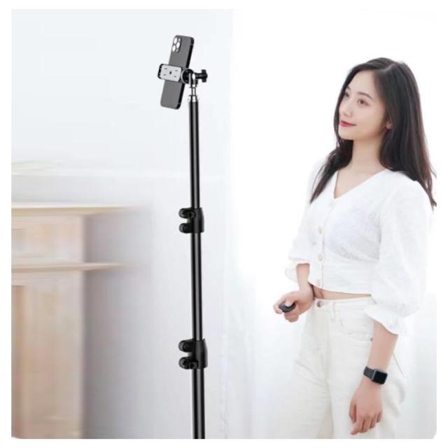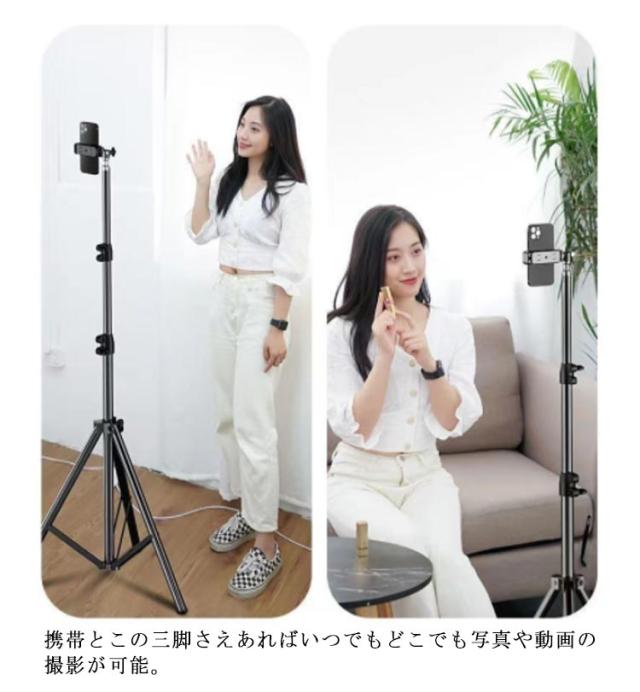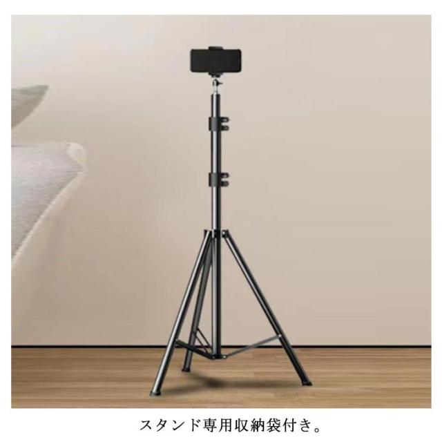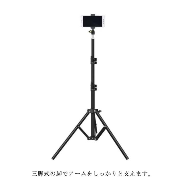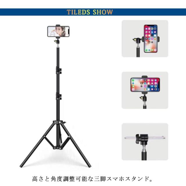 | 高さと角度調整可能な三脚スマホスタンド。 三脚式の脚でアームをしっかりと支えます。 スタンド専用収納袋付き。 携帯とこの三脚さえあればいつでもどこでも写真や動画の撮影が可能。 | |