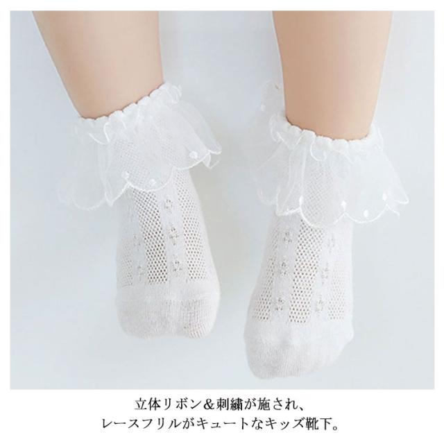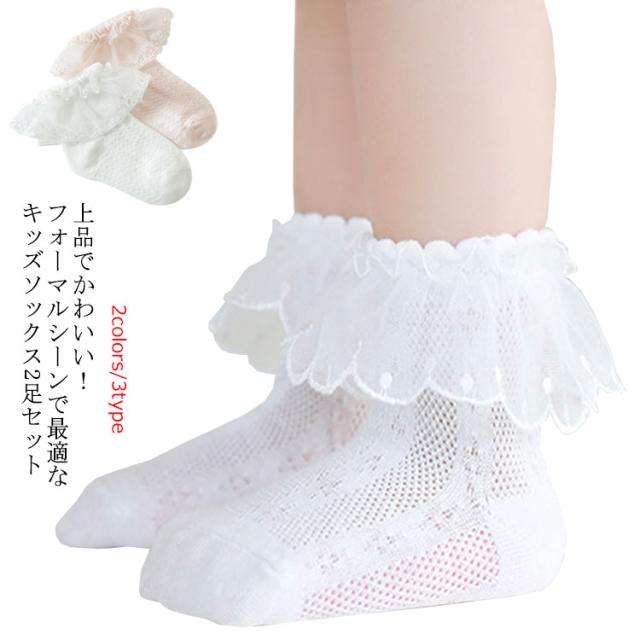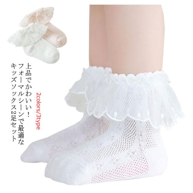 【送料無料】靴下 ベビー キッズ ソックス 2足セット フリル フォーマル アンクルソックス レース フォーマル 綿 コットン かわいい レースソックス 子供 ショートソックス メッシュ 卒業式 卒園式 入園式 シンプル お洒落 無地 韓国風 ベビー靴下