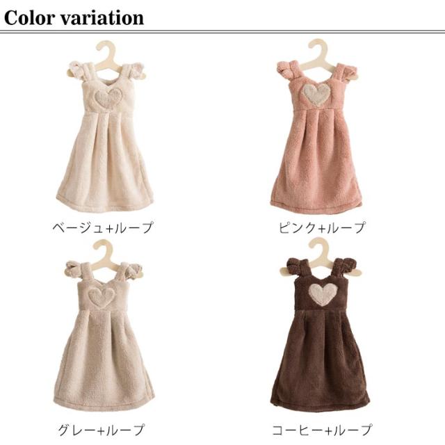 | ドレスタオル ドレスの形をしたお手拭きタオルです。 ハンガー付きなので、届いてすぐにお好きな場所に掛けてお使いいただけます。 | |