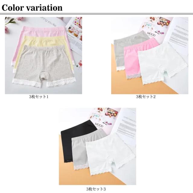3枚セット 送料無料 オーバーパンツ キッズ スパッツ 子供服 女の子 3分丈 レース インナー 下着 子供 パンツ ショーツ ボクサーブリーフ レース 無地 可愛い 100 110 120 130 140 150 160