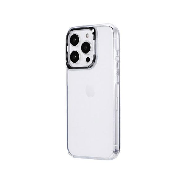 iPhone 15Pro ケース クリア 透明 ブラック カメラ部分 スタンド ストラップホルダー 付 TPU ソフト スマホ カバー シンプル