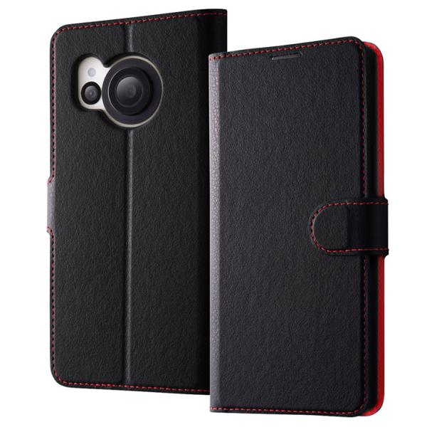 AQUOS R8 手帳型ケース ブラック レザー ベルト レッド PUレザー スマホ カバー シンプル 耐衝撃 頑丈 カード 収納 ポケット