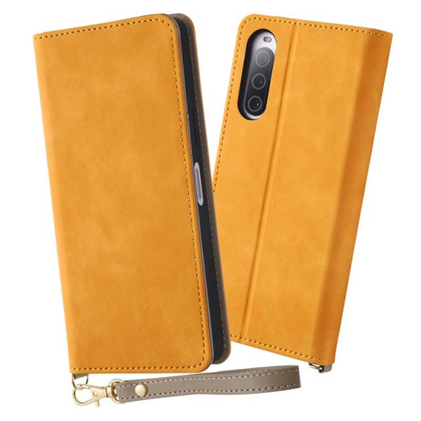 Xperia10V 手帳型ケース イエロー レザー ムラ染め PUレザー スマホ カバー シンプル 耐衝撃 頑丈 丈夫 強い カード 収納 ポケット