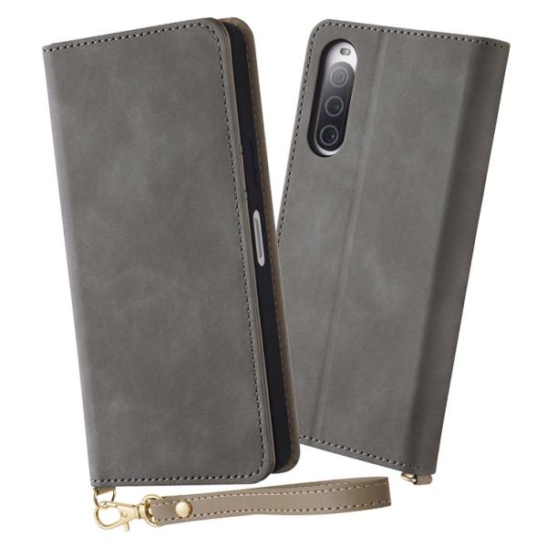 Xperia10V 手帳型ケース グレー レザー ムラ染め PUレザー スマホ カバー シンプル 耐衝撃 頑丈 丈夫 強い カード 収納 ポケット