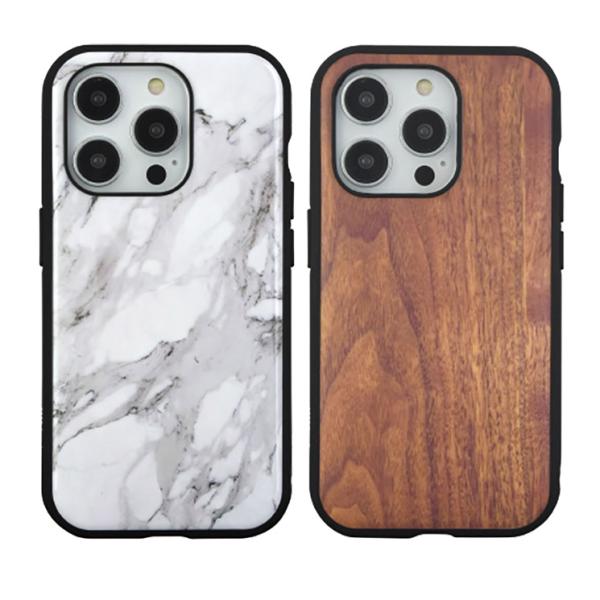 iPhone 15Pro ケース ハイブリッド 大理石調 木目調 マーブル ウォールナット 耐衝撃 スマホ カバー