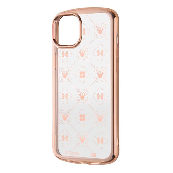 iPhone 15Plus 14Plus ケース ディズニー ミニー クリア ピンク メタリック キャラクター グッズ 総柄 透明 カメラ 保護 カバー