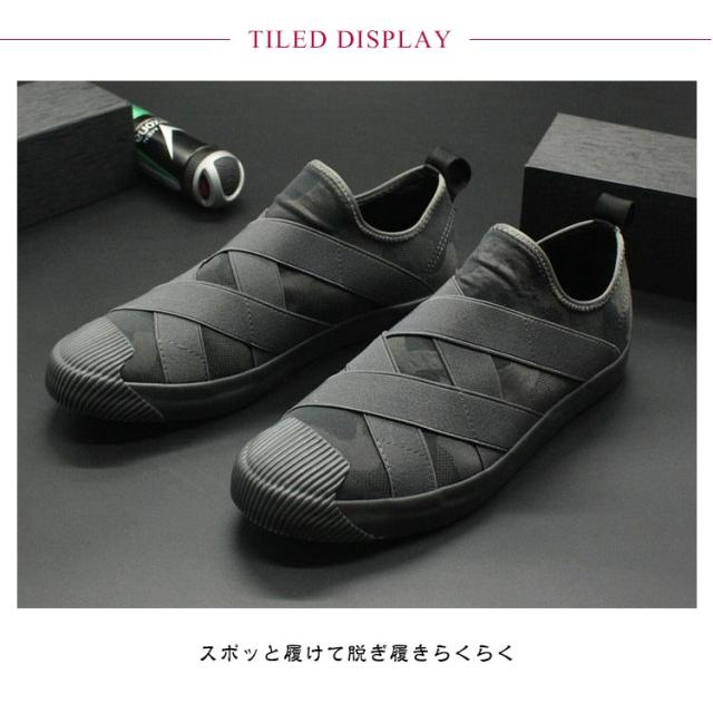 スリッポン スニーカー メンズ クロスバンド ローカット カジュアルシューズ バンド ゴム 通勤 通学 軽い 滑りにくい おしゃれ シンプル 全3色