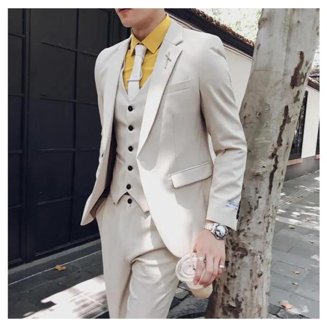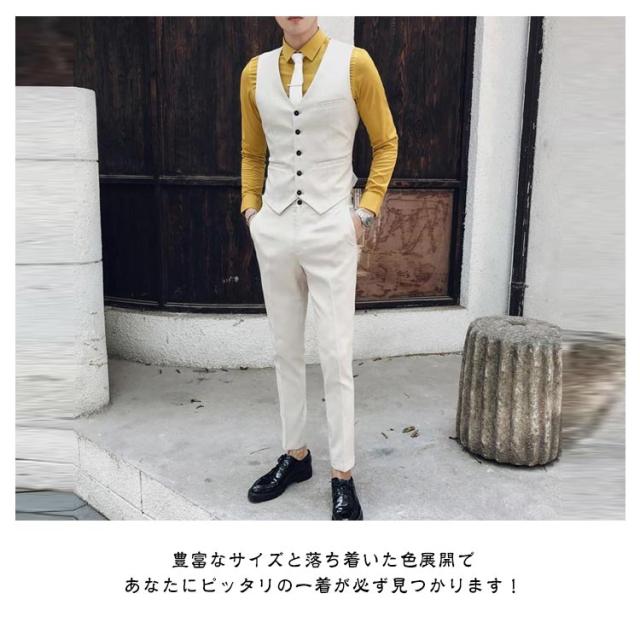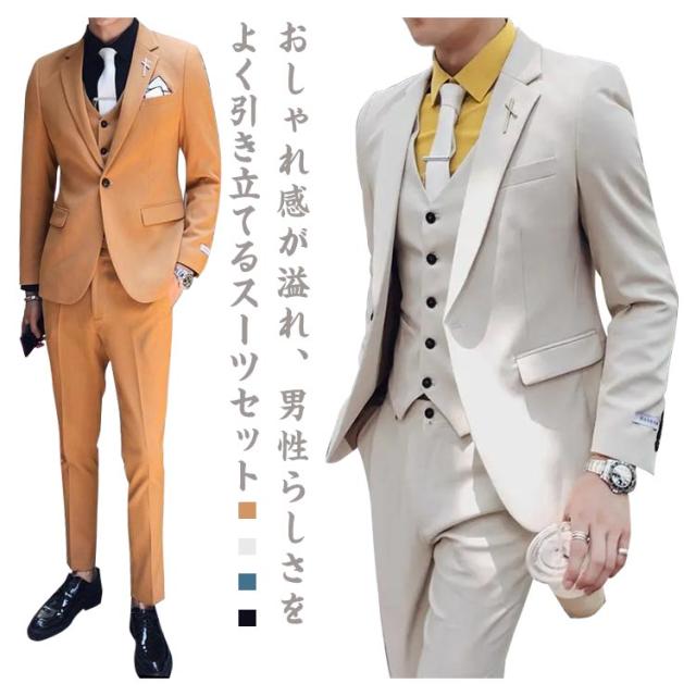フォーマルスーツ メンズ 3点セット ジャケット+ベスト+パンツ メンズスーツ スリムスーツ 正装 紳士 長ズボン 紳士服 礼服 通勤 オフィス 就活 面接 カジュアル 上品 お呼ばれ 結婚式 二次会 パーティー 全4色