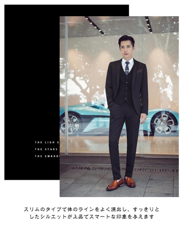 | おしゃれ感が溢れ、男性らしさをよく引き立てるスーツセット。 スタイリッシュな印象で、高級感が漂うセットアップに仕上がっています。 スリムのタイプで体のラインをよく演出し、すっきりとしたシルエットが上品でスマートな印象を与えます。 豊富なサイズと落ち着いた色展開で、あなたにピッタリの一着が必ず見つかります! 卒業式、就活、出張、ウェディング、演奏会、発表会、催事など、フォーマルからカジュアルまで、いろんなシーンで適用出来ます。 彼氏へのプレゼントにおすすめ。 | |