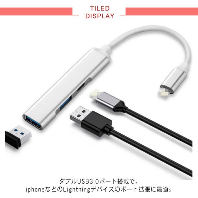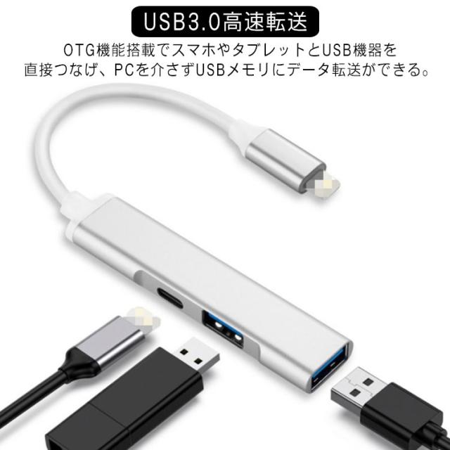 送料無料 Lightning to USB変換アダプター OTG搭載 lightning usbハブ ケーブル ダブルUSB3.0ポート搭載 iphoneポート拡張 双方向データ転送 iPhone USB 変換アダプター OTGデュアル USB 3.0 カメラアダプター 充電ポート付き USBメモリ カードリーダー Midiキー