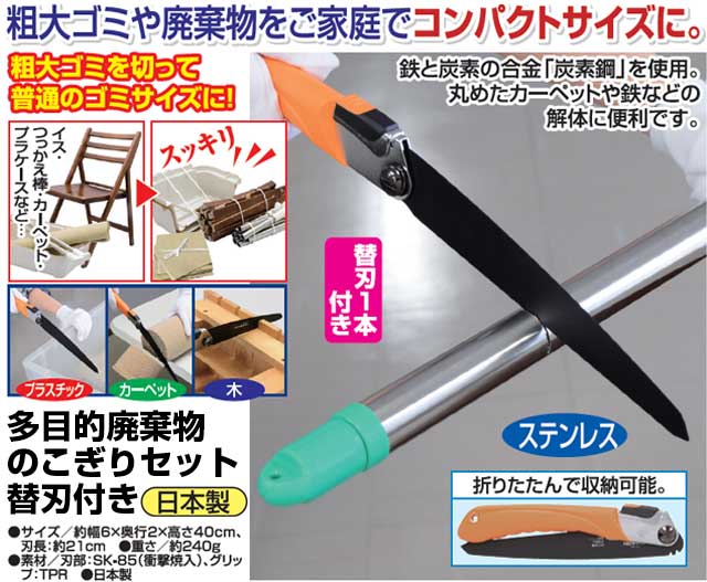多目的廃棄物のこぎりセット 替刃付き 万能ノコギリ 解体ノコギリ