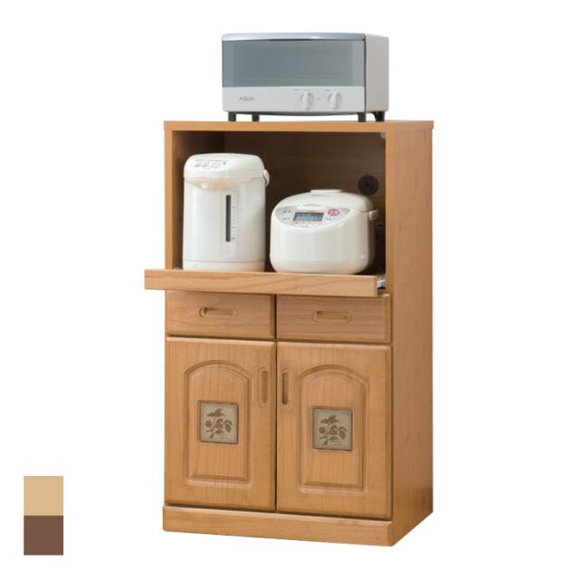 レンジ台 ロータイプ 食器棚 キッチン収納 キッチンボード レンジボード レンジラック スライド棚 2口コンセント付き 大川家具 完成品 送料無料