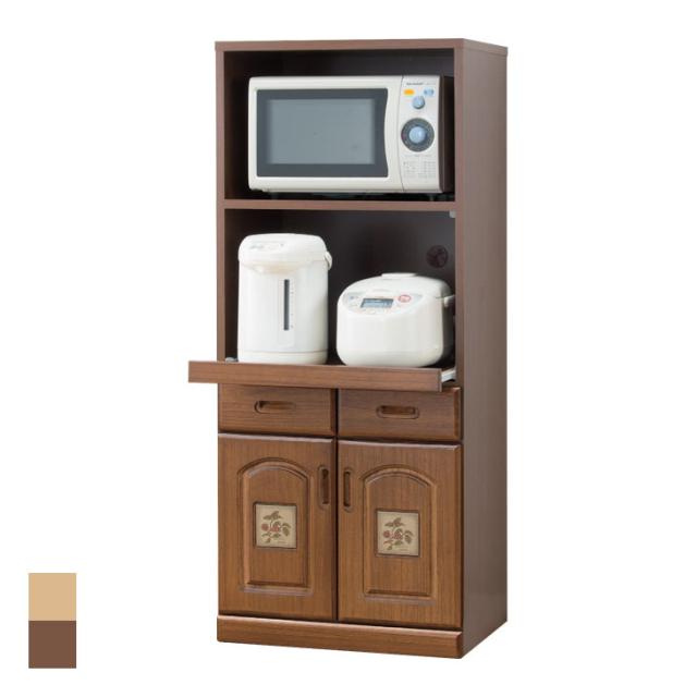レンジ台 ハイタイプ 食器棚 キッチン収納 キッチンボード レンジボード レンジラック スライド棚 2口コンセント付き 大川家具 完成品 送料無料