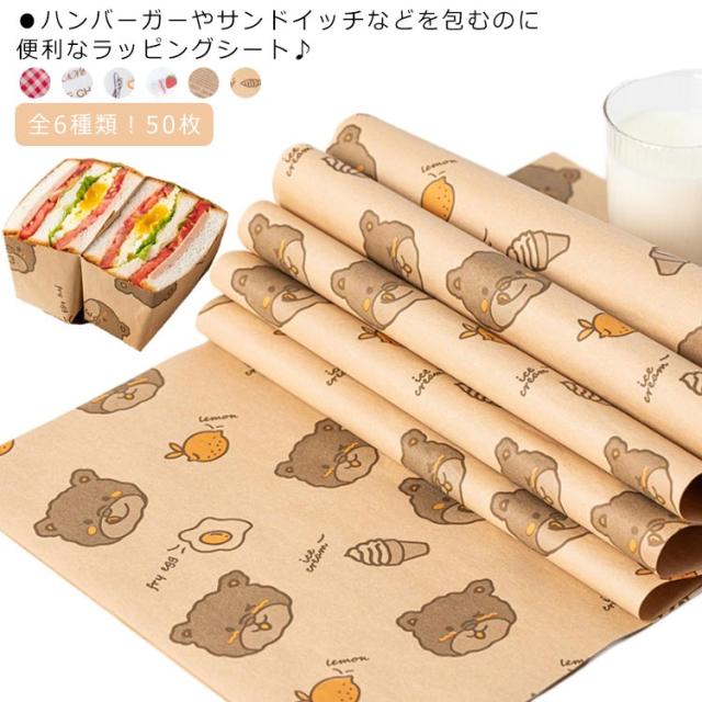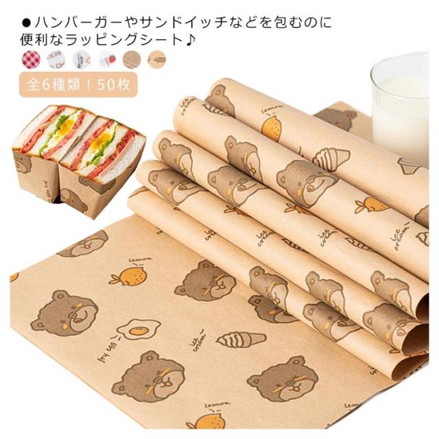 送料無料 包装紙 ラッピングシート 50枚 おにぎり サンドイッチ ハンバーガー シート ハンバーガー袋 ペーパー 使い捨て食器