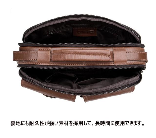 | 天然牛革の厳選素材を使用、「革のエイジング(経年変化)」を存分に味わえるリッチなヴィンテージ感覚の風合いを実現させています。 iPad収納可、収納力抜群!様々な機能ポケットが搭載し、細かく分類収納が可能になる。iPad、携帯、財布、手帳、折畳傘などをいっぱい入ります。適度なサイズで、日常生活や自転車やアウトドアや小旅行などにも大活躍です。 ベルトの長さはご自由に調節可能し様々な体型を対応できます。ベルトの接合部分も丁寧なステッチや金属鋲で縫製し、耐久性向上! 正面にポケットを配置して、携帯や財布など収納可能で、機能性が強いです。 裏地にも耐久性が強い素材を採用して、長時間に使用できます。 用途に応じて簡単に取付できるショルダーストラップ付きで、手持ち、肩掛けの2WAY仕様です。 アウトドア、通勤、様々なシーンで多様に活用いただくことが可能です。 誕生日、バレンタインデイー、クリスマス、父の日などの時の贈り物にも最適です。 | |