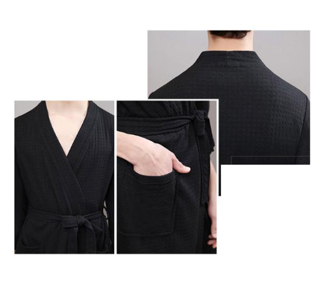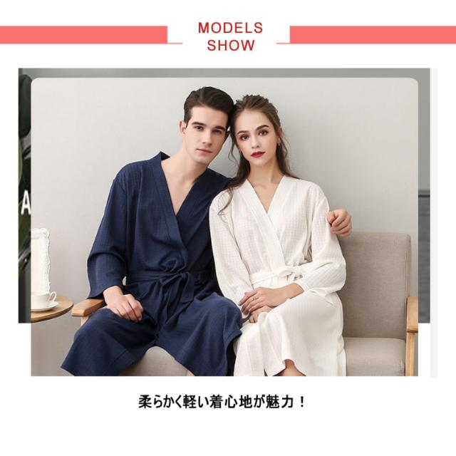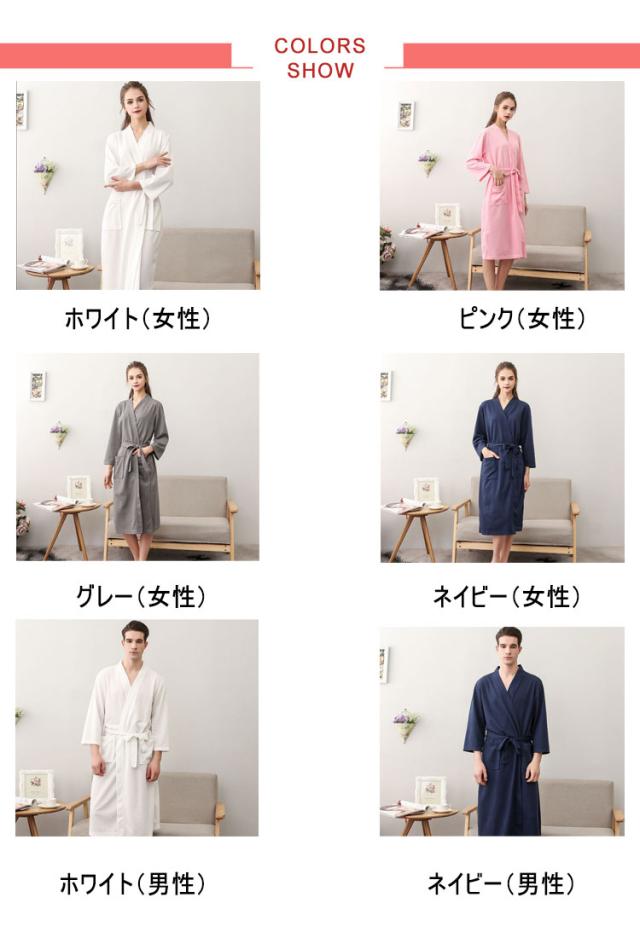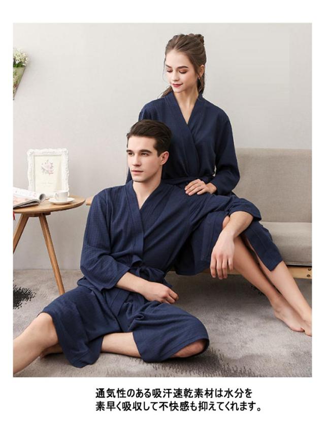 バスローブ レディース メンズ 風呂上がり 夏 薄手 通気 吸水速乾 膝丈 七分袖 バスローブ ワッフル ルームウエア ナイトガウン 寝巻き パジャマ 寝間着 男女兼用 部屋着 ナイトウエア 無地 ゆったり 大きいサイズ ペア 旅館 温泉 ホテル 春 秋 送料無料