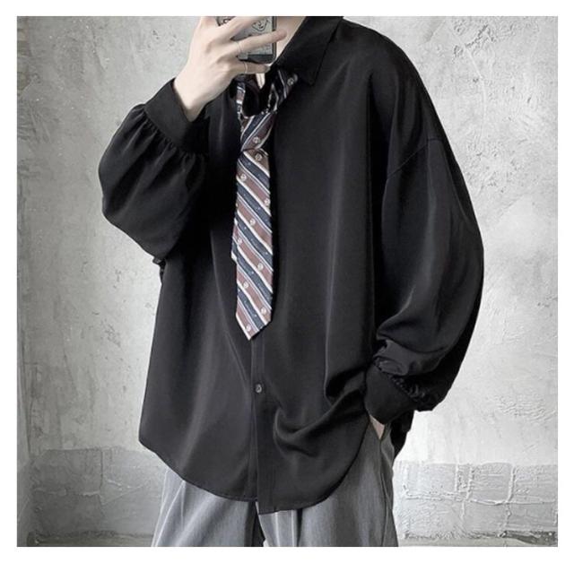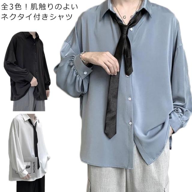 シャツ メンズ 長袖シャツ カジュアルシャツ ネクタイ付き トップス ゆったり オーバーサイズ シャツ ビッグシルエット ビッグシャツ 羽織り 男性用 新作 春夏 夏 夏物 夏服 秋服 送料無料