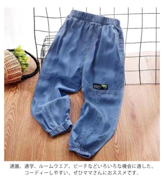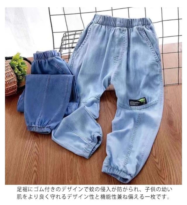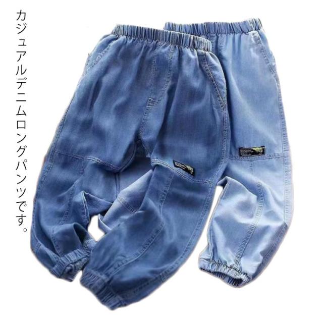 ロングパンツ デニム パンツ 男の子 長ズボン 子供パンツ キッズパンツ デニムロングパンツ 春 秋 夏 薄手 ゆったり ウエストゴム 裾ゴム 虫よけ 子供服 ジュニア 小学生 中学生 110 120 130 140 150 160