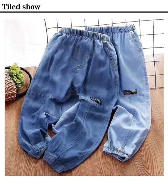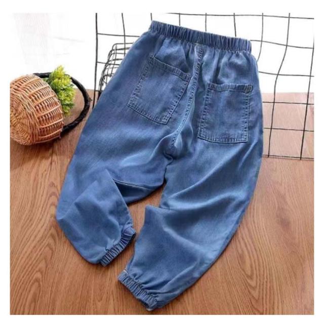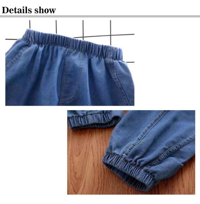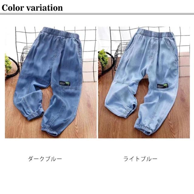 | カジュアルデニムロングパンツです。 足裾にゴム付きのデザインで蚊の侵入が防がられ、子供の幼い肌をより良く守れるデザイン性と機能性兼ね備える一枚です。 通園、通学、ルームウエア、ビーチなどいろいろな機会に適した、コーディーしやすい、ぜひママさんにおススメです。 | |