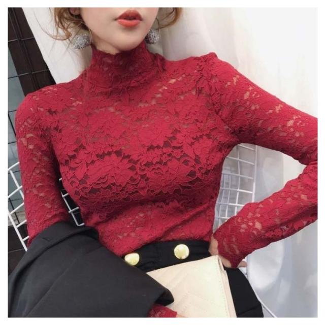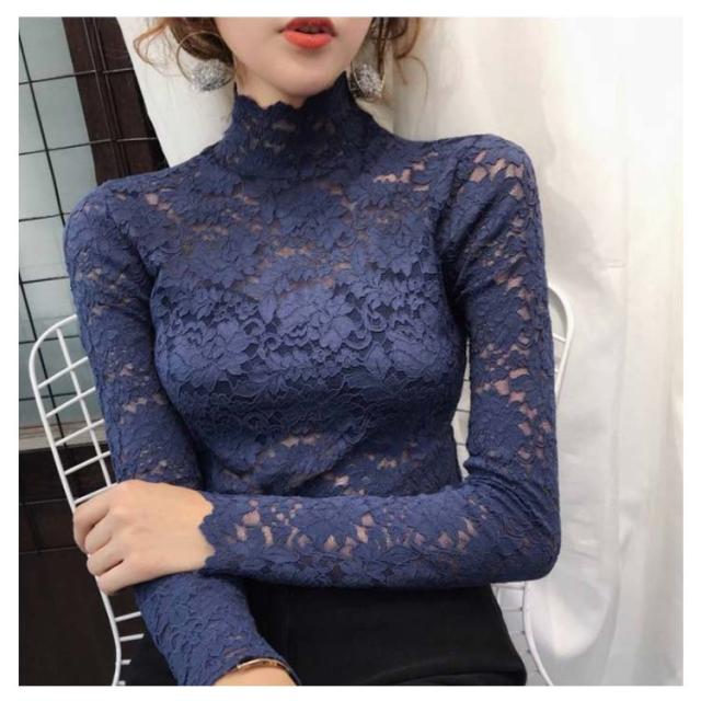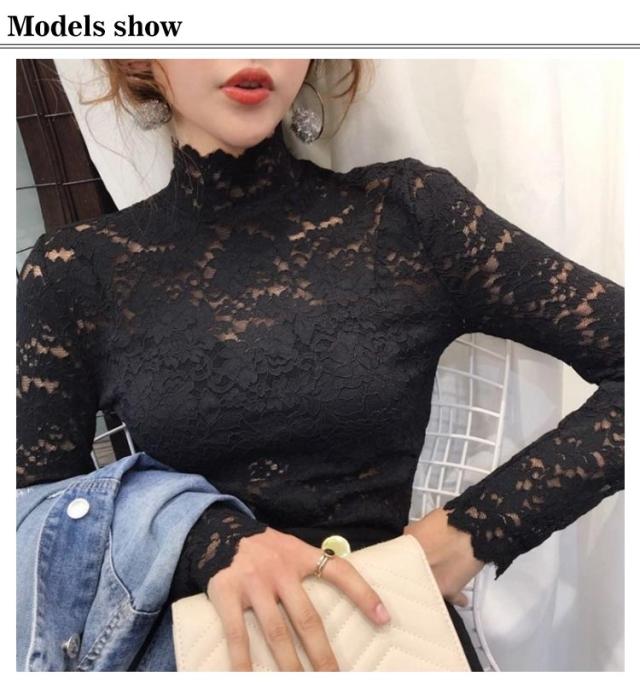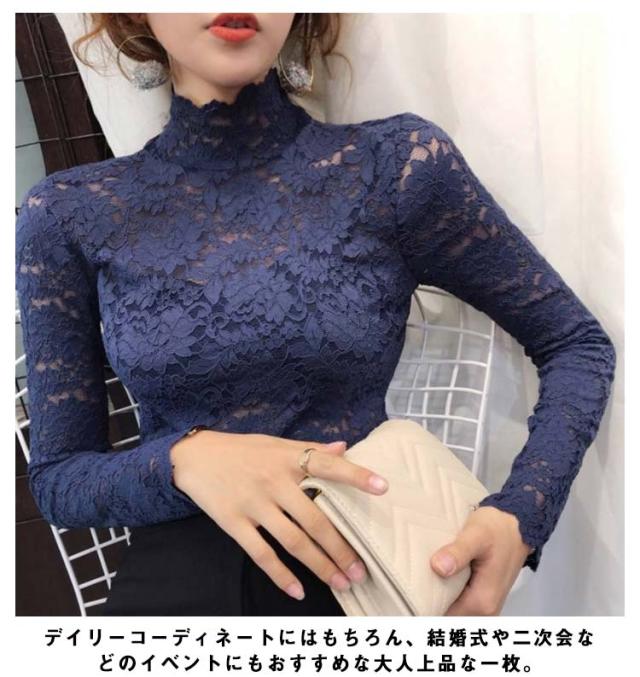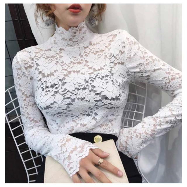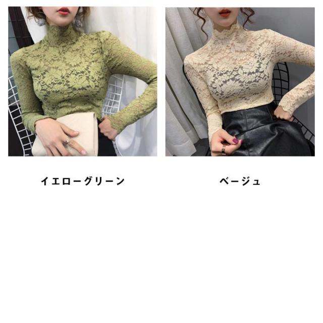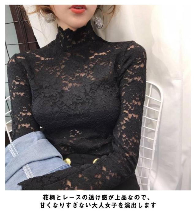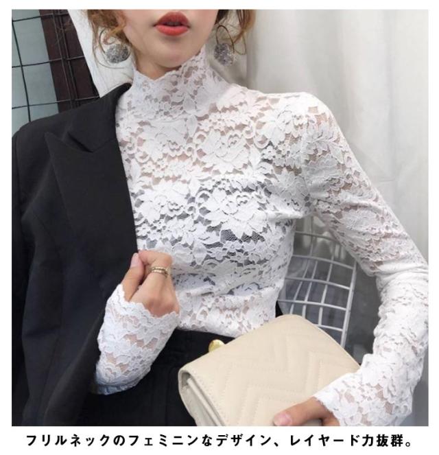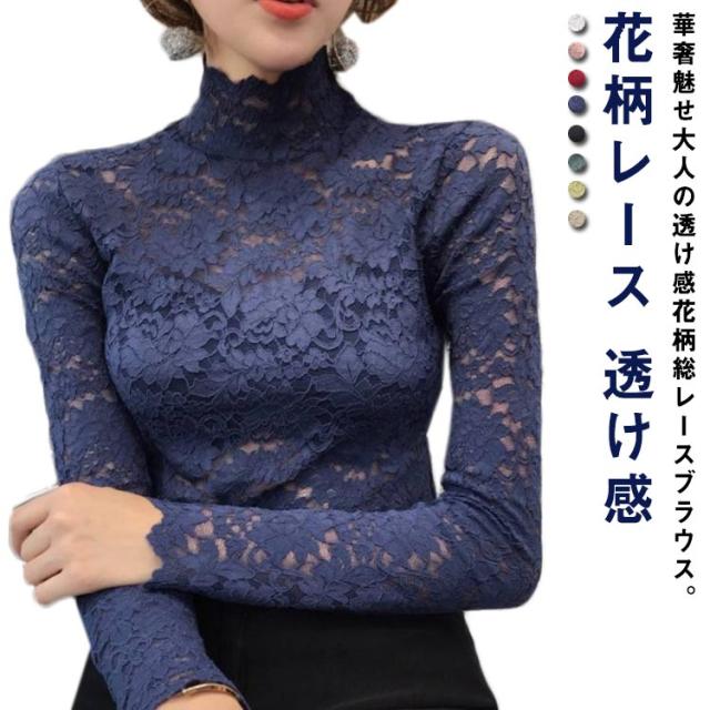 送料無料 レースブラウス 長袖 レディース ブラウス 総レース 花柄レース 透け感 ハイネック フリル スケスケ セクシー シースルー トップス シャツブラウス インナー 重ね着 レイヤード お洒落 着痩せ エレガント キレイめ プルオーバー 春服 秋物