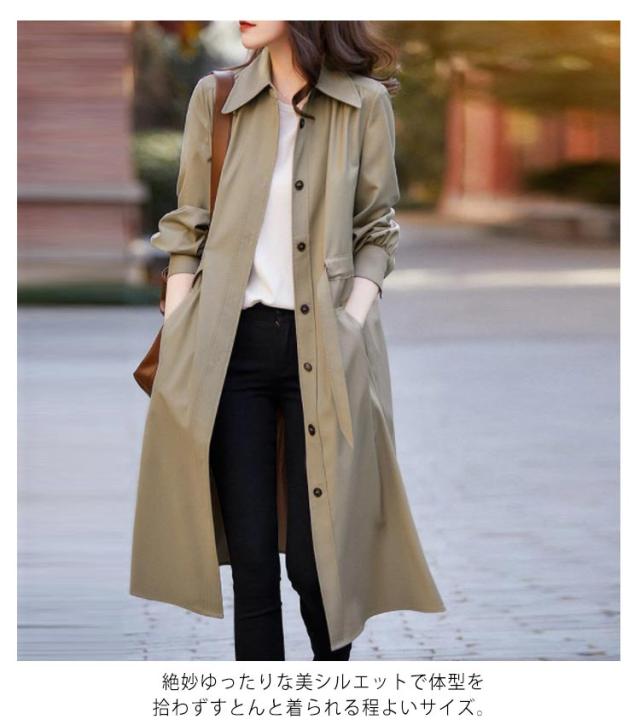 スプリングコート レディース トレンチ コート ロング 春物 春服 ロング丈 春トレンチ コート アウター マウンテンコート 大きいサイズ カジュアル 大人 体型カバー ゆったり 春 秋 ママコート 無地 30代 40代