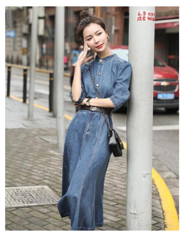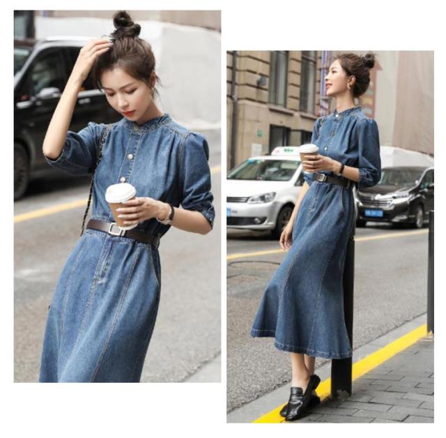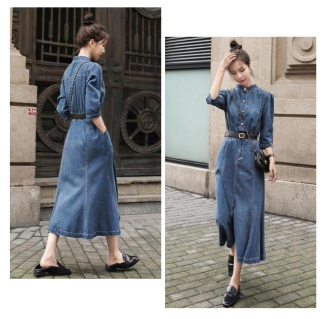デニムワンピース レディース 春秋 七分袖 ロングワンピース ロング丈デニムワンピース ロング きれいめ 無地 マーメイドワンピース パーティードレス ファッション お出かけ