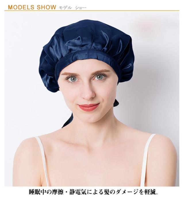 | 美髪のための、低刺激&高保湿のシルク100%ナイトキャップ。 睡眠中の摩擦・静電気による髪のダメージを軽減。 被って眠るだけで、翌朝サラサラの髪に! 絡まりや寝ぐせなどの防止して、スタイリングの手間が軽減されます。 | |