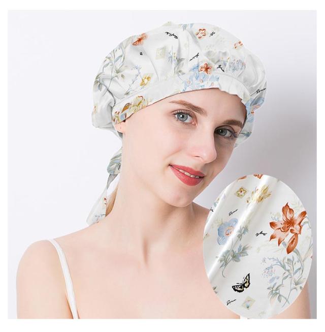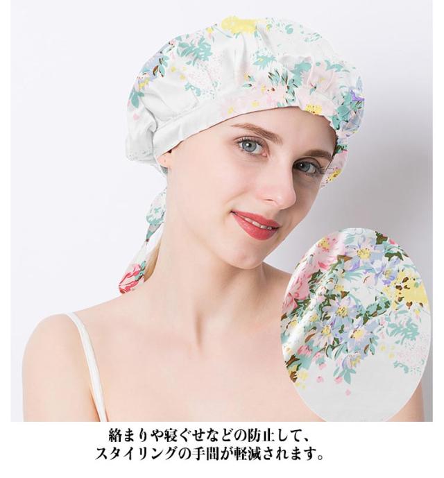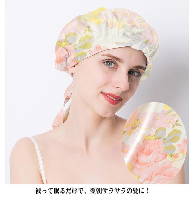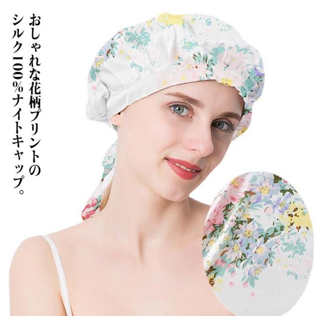 ナイトキャップ シルク100% 美髪 ヘアキャップ 花柄 シルクキャップ おしゃれ ヘアケア レディース ロングヘア ヘアケアグッズ 保湿 通気性 寝癖防止 乾燥 擦れ 枝毛 切れ毛 防止 かわいい 母 妻 プレゼント【送料無料】