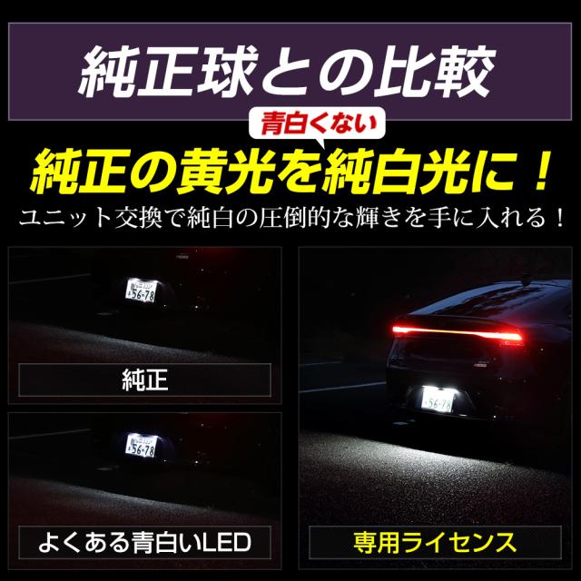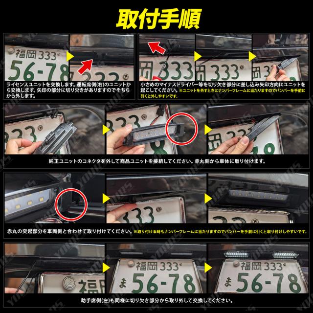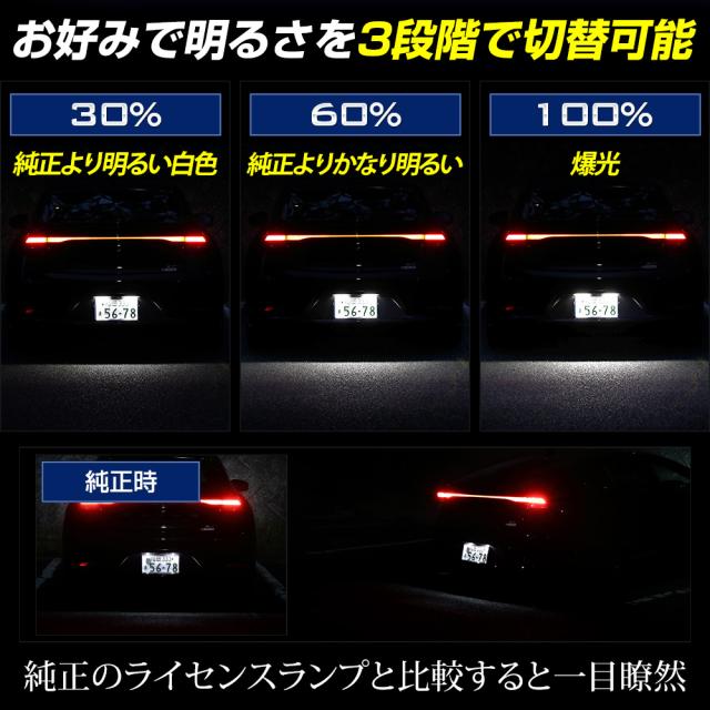 ユアーズ新開発製品!今までにない強烈な輝きを放つ!車種専用ライセンスユニット! 簡単取付でさらなる強烈な明るさをお求めの方は絶対にLEDライセンスユニット! 純正の少し暗めのLEDが簡単取付で青白くない明るい純白色に!! 30%・60%・100%の3段階で光量調整ができるから明るすぎるのが苦手な方にもおすすめです! |